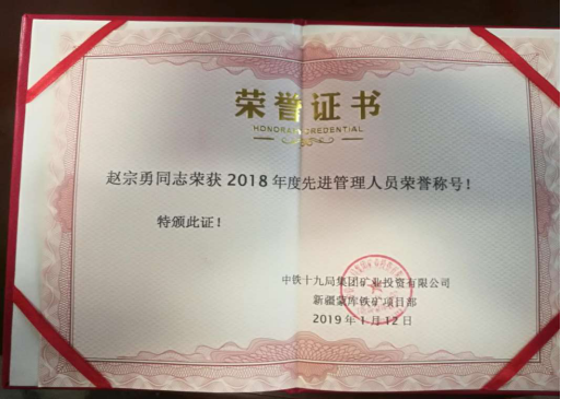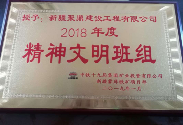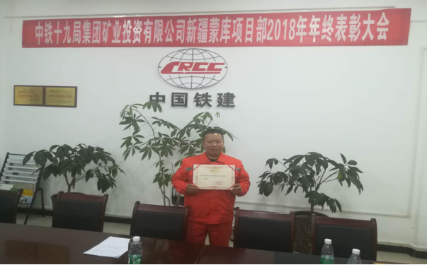1月13日,中鐵十九局集團(tuán)投資有限公司新疆蒙庫鐵礦項(xiàng)目部召開2018年度精神文明工作會(huì)議及年度表彰大會(huì),我單位為精神文明活動(dòng)深入發(fā)展做出積極貢獻(xiàn)受到表彰。我單位被授予2018年度精神文明班組稱號。